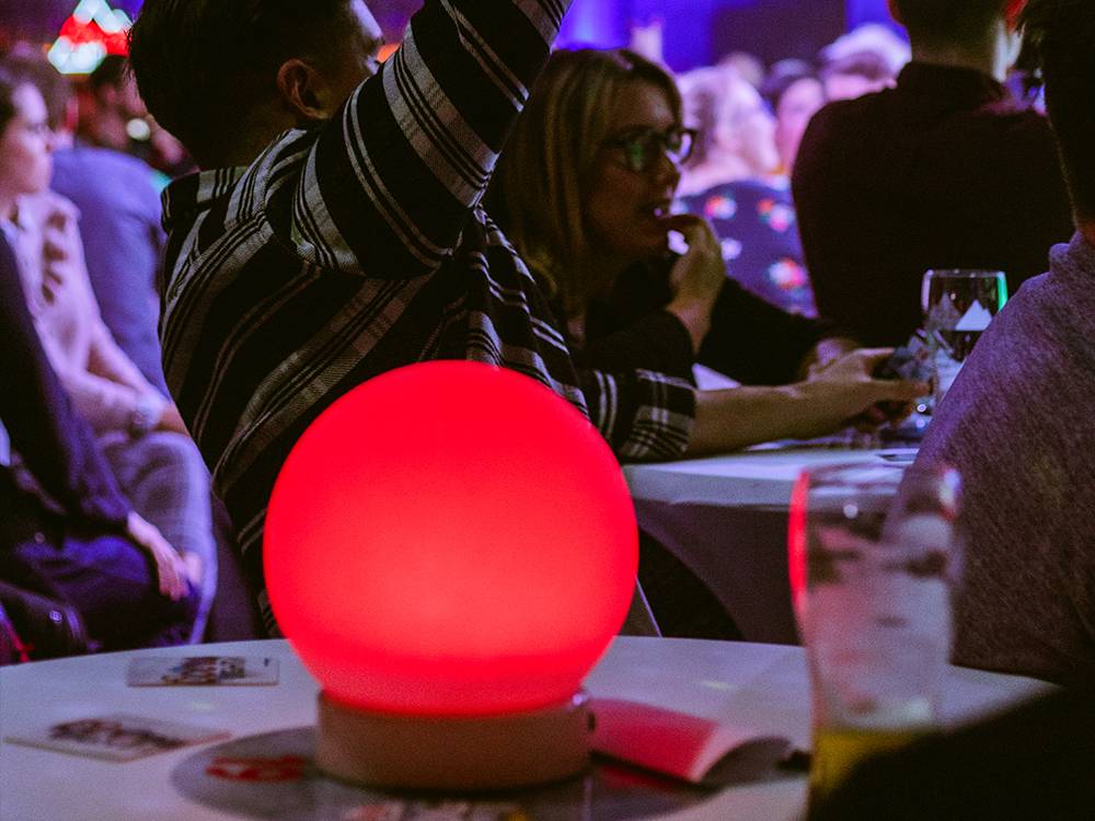 Reacting to your buzzer presses and the quizmaster, these globes flash various colours throughout the event and let everyone know if you got it right or wrong!